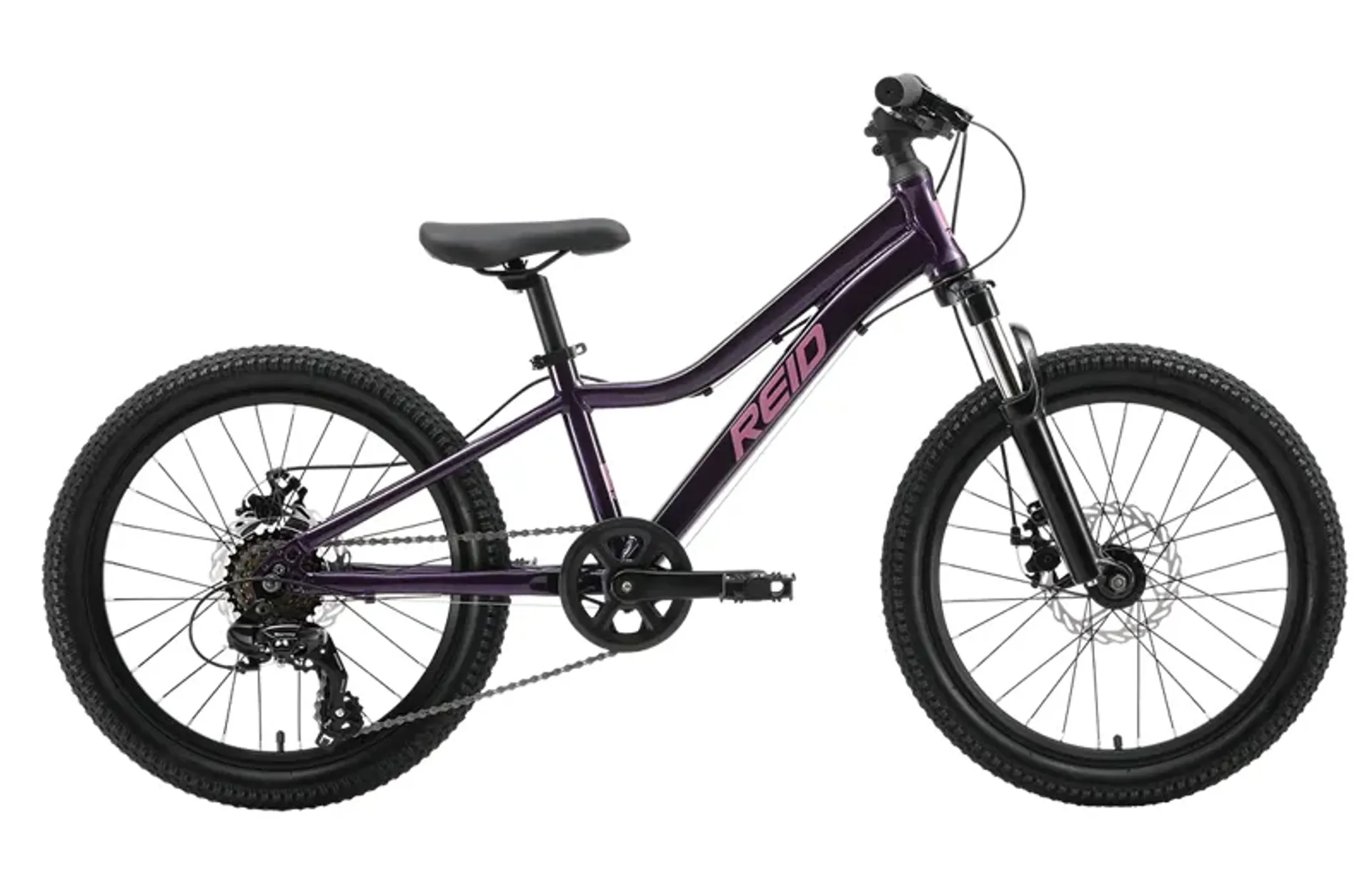 Safe, quality design means they might just overtake you on the trails! Kids are the roughest test riders out there and the Tract Jr. 20" kids MTB is up for the challenge. Rough and ready, quality aluminum alloy frame matched with quality alloy components make for a reliable, lightweight kids MTB. Reid Bikes' kids bikes are adult quality and durability scaled down for younger riders, so kids can keep up with their parents. With 7-speed Shimano gearing and sturdy off-road tires, they might just overtake you.