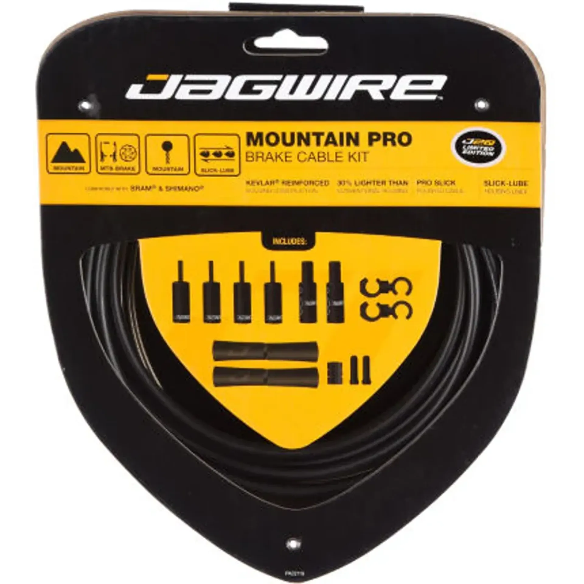 The kevlar reinforced housing dramatically improves braking power for both mechanical disk and V-type brake systems. 30% lighter than traditional brake housing and easy to install, a mountain Pro kit using Jagwire's L3 liner technology will deliver miles of smooth, precise performance.