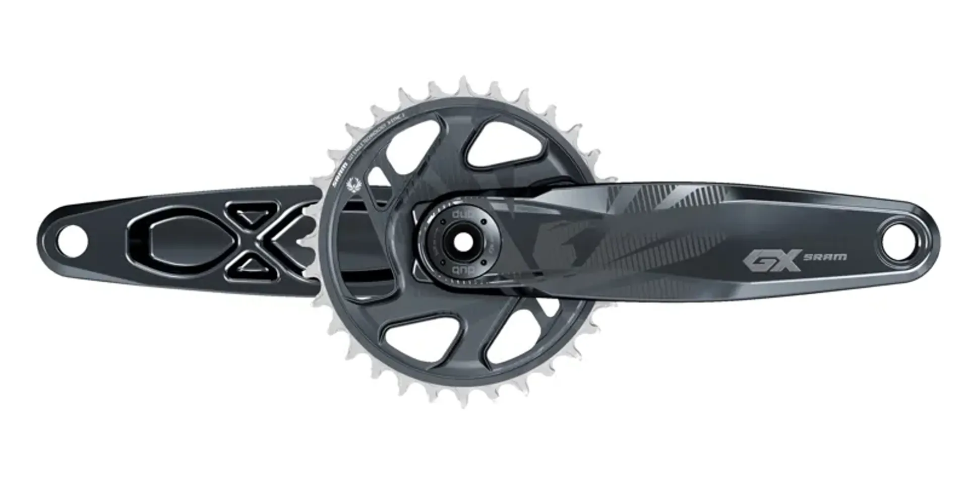 The SRAM GX Eagle DUB crankset delivers consistent performance every time out. Featuring its X-SYNC 2 tooth profile chainring, the GX crankset is engineered for complete chain control. Each tooth's thickness is precisely toleranced and controlled to work seamlessly with the chain's inner and outer links.
