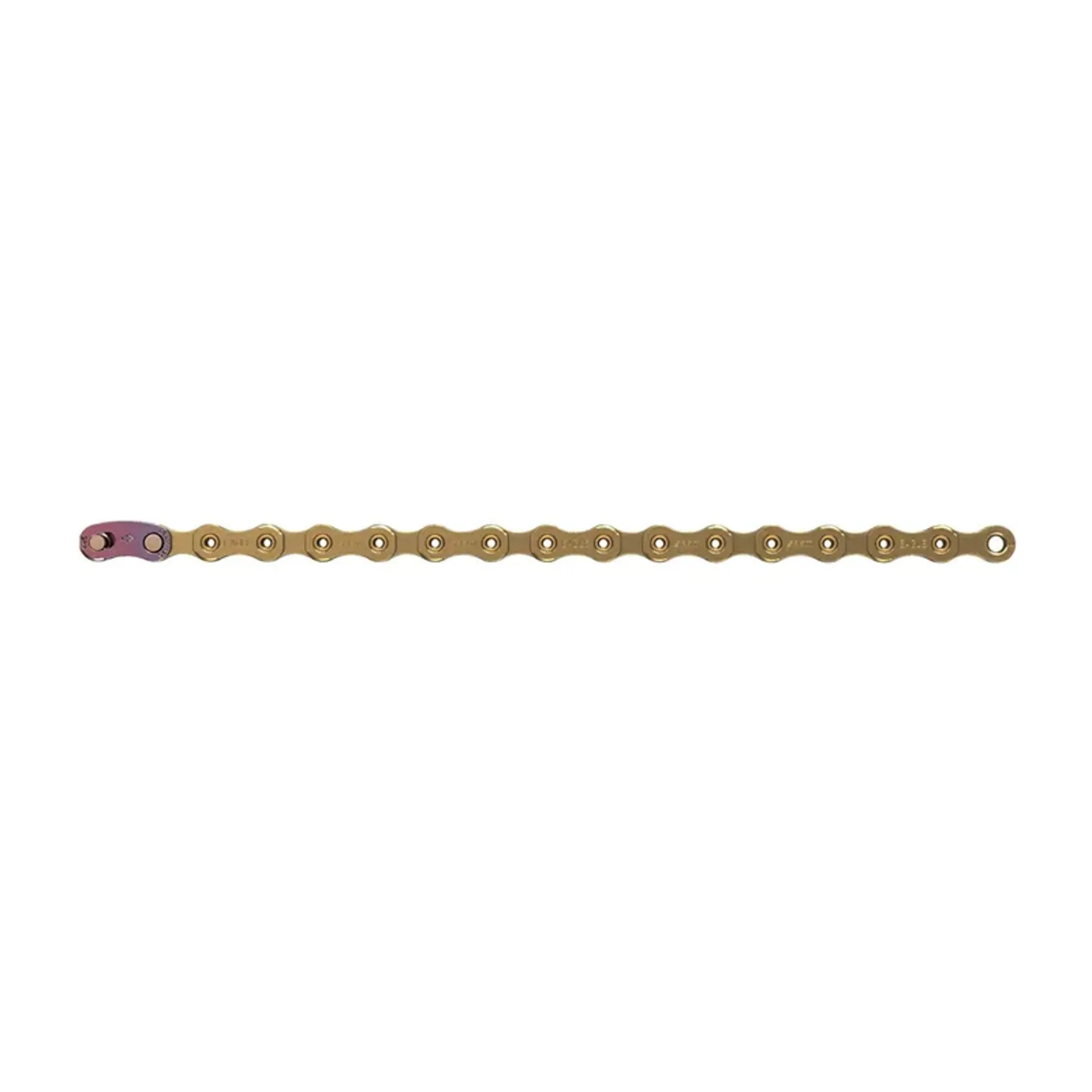 It might look normal from the outside, but the engineering inside this incredible new chain design that makes possible a gear range previously found only in 2-chainring drivetrains. And it’s also the biggest contributor to the Eagle™ drivetrain’s ultra-smooth, precise, durable and quiet performance. The Eagle™ chain’s links have a smooth radius, with no sharp edges or chamfers, which yield a significant reduction in noise, friction and wear on chainrings and cassette cogs. This design also allows for a flatter plate, which means more consistent chain riveting and greater overall strength. Hard chrome™ technology extends the chain’s optimal performance life, and a titanium nitride coating on the gold and black models decreases corrosion and further reduces friction.