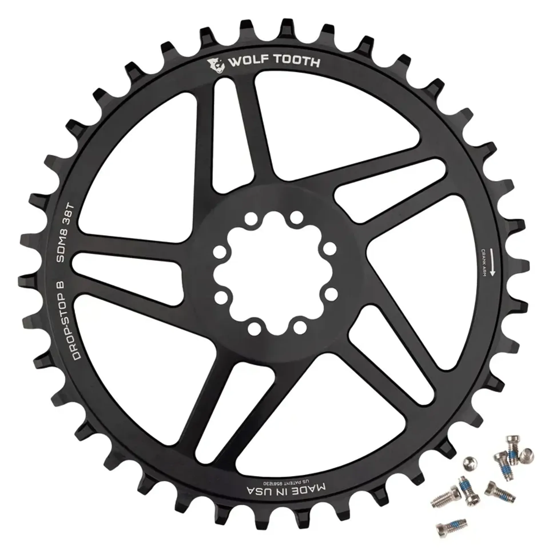 In line with Wolf Tooth's guiding ethos of providing unrivaled design innovation, reliability and durability, this chainring employs a patented Drop-Stop® wide-narrow tooth profile which not only keeps the chain securely in place on single chainring setups but dislodges mud, dirt and excess precipitation more efficiently. For additional security in extreme conditions, this chainring is best used with a clutch-type rear derailleur.