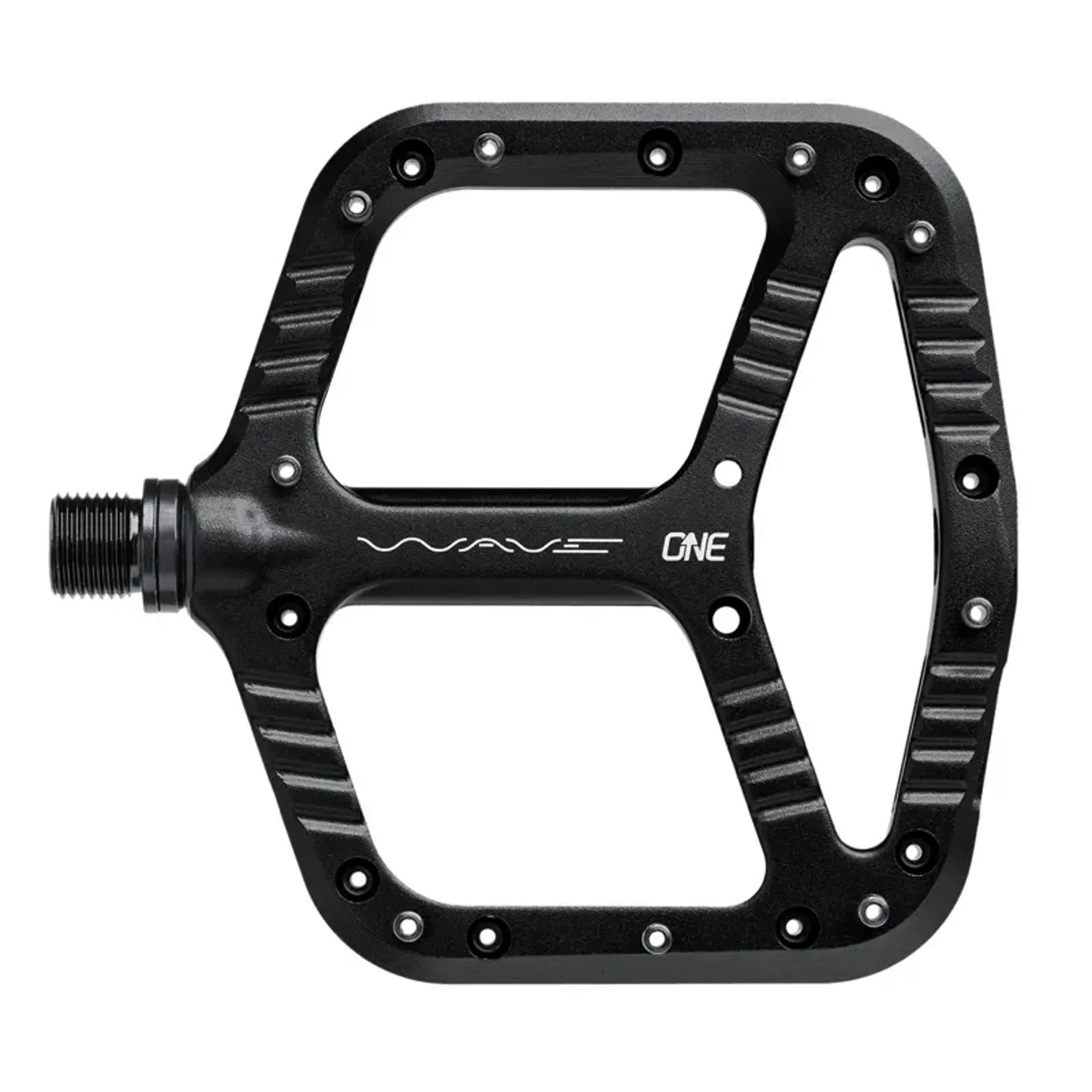 Most flat pedal profiles are either convex or concave. Wave is a patented hybrid convex/concave shape that promotes an aggressive heels-dropped riding position and gives you a more natural pedal stroke when seated. With Wave, your foot is being held by the shape of the pedal - not just the pins.