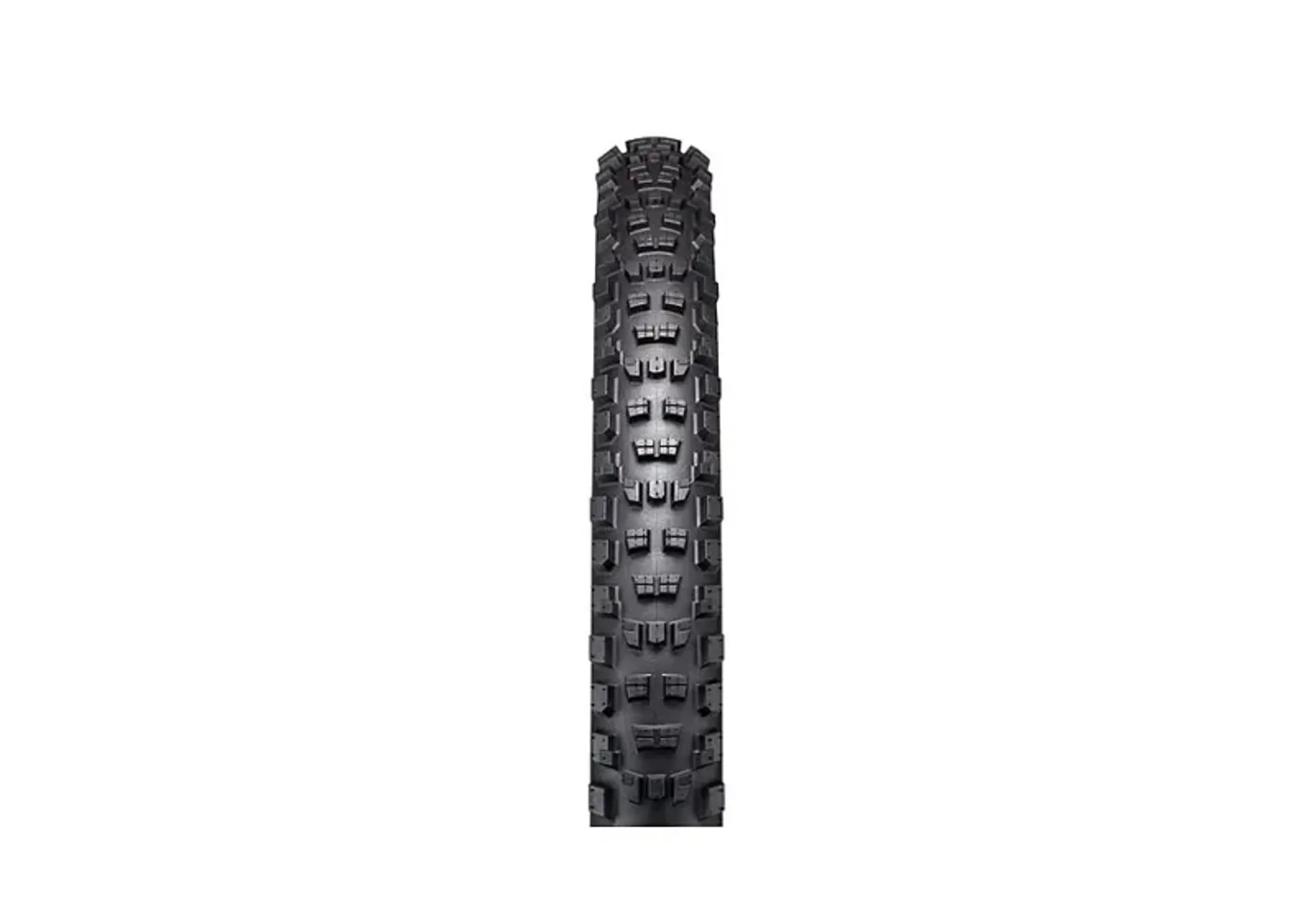 The design features an increased radial-style casing angle for dramatically reduced radial stiffness, increasing the tire footprint by 30%. Robust Block-in-Block shoulder knobs with the T9 compound hold firm for total control, while the low rolling resistance center tread in T7 compound allows for faster descents and better rolling.