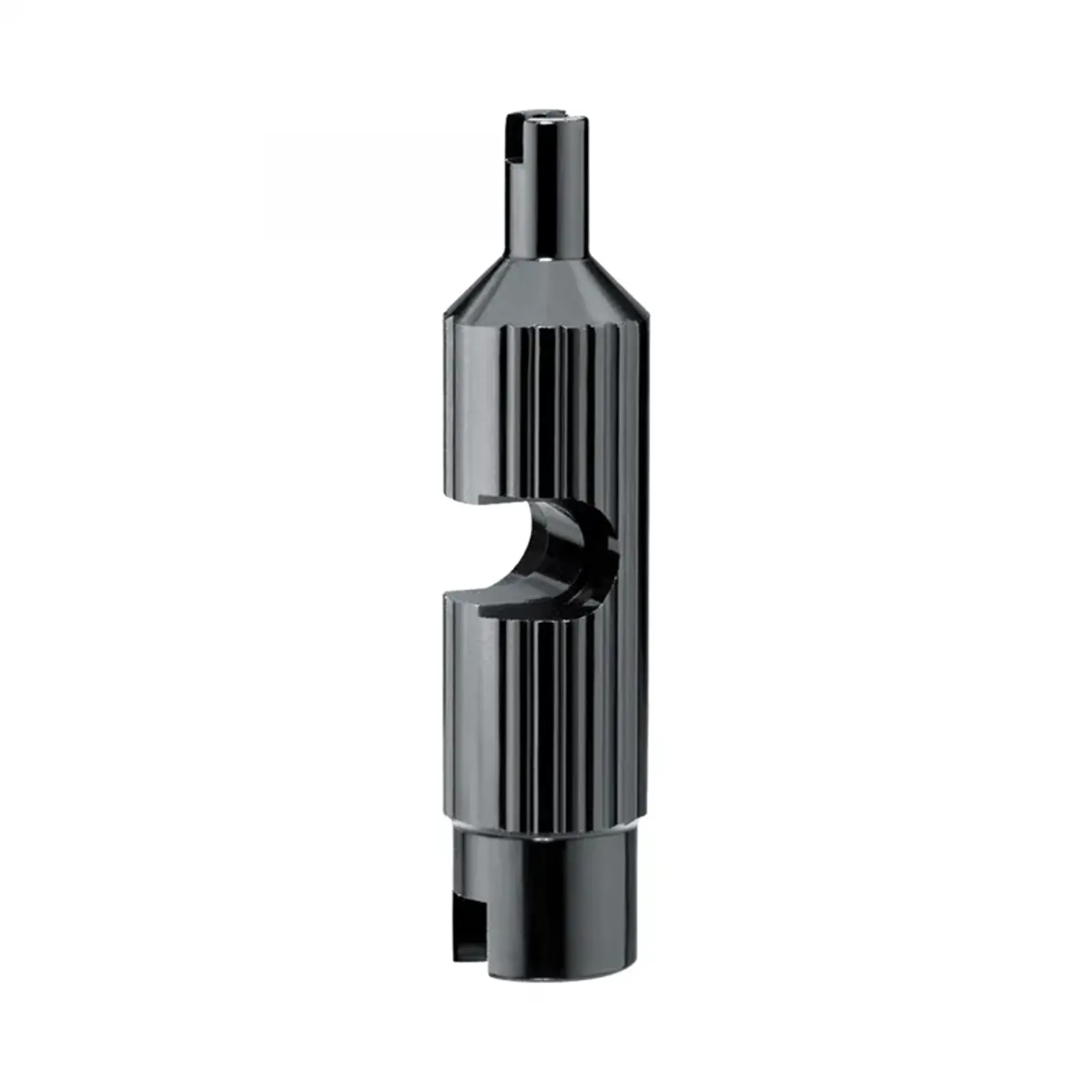 A metal valve tool designed to tighten or remove Schrader and two-piece Presta valve cores. Can also be used to tighten or loosen Presta valve extensions.